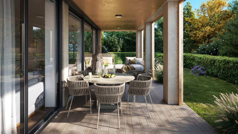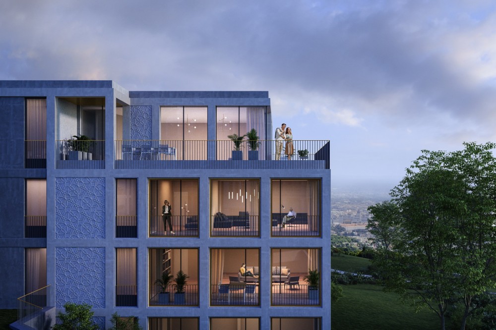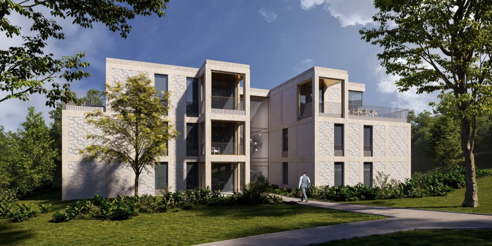 Az új villákat úgy telepítjük, hogy a fantasztikus panoráma a lehető legtöbb lakásból élvezhető legyen. Minden lakás sarok pozícióban helyezkedik el, így azok legalább két homlokzati oldallal rendelkeznek, sarkokon fedett loggiákkal. A lakások több irányból kapnak természetes megvilágítást, és az épületek elforgatásával a lakóegységek intimitása is biztosított. Az újjászületett helyi védett épület kiegészítéseit és a köré telepített új villákat mai építészeti eszközökkel fogalmaztuk meg. Ez az architektúra a helyi értékekből táplálkozik, az épületek részletképzései a régi elemek kortárs interpretációi: a loggiák, a homlokzati tagolás és az absztrahált ornamentika a szomszédos üdülőszállók és svábhegyi villák világát idézi meg mai nyelven. A régi és az új harmonikus együttese hitünk szerint értékálló designt eredményez.